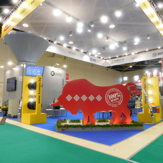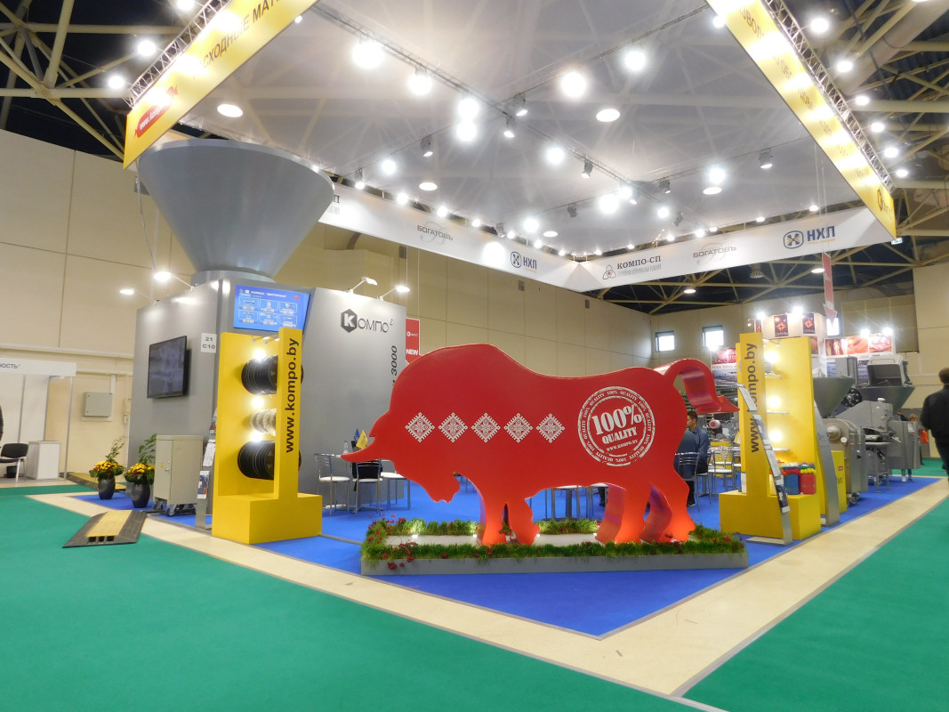 Именно в этом салоне и можно было увидеть стенд белорусской машиностроительной компании «КОМПО», который в этот раз привлекал внимание посетителей не только своей традиционно большой площадью и большим количеством экспонатов, но и необычным дизайном: офис стенда был выполнен в форме огромного вакуумного шприца «КОМПО», а посетителей встречал внушительных размеров макет белорусского зубра, демонстрирующий не только государственную принадлежность производителя, но и надежность предлагаемого оборудования.