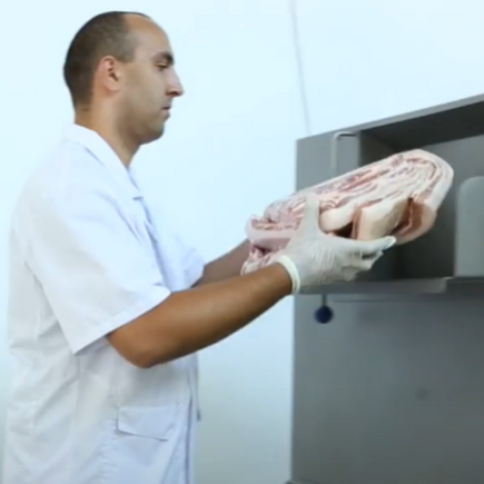ИБ-4 – позволяет измельчать замороженные блоки с температурой до минус 18°С и получать фракцию измельченного сырья до 11 мм, что идеально подходит для последующего измельчения в куттерах без дополнительного отепления при производстве вареных колбас и сосисок.