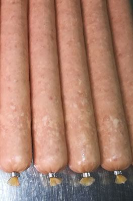 Как видно на фото, использование линейки оборудования КОМПО позволяет существенно улучшить рисунок фарша, что является серьезным конкурентным преимуществом при решении задачи - выделиться на полке супермаркета и привлечь внимание покупателя, пробудить в нем желание приобрести именно данный продукт, так как его внешний вид дает основание предположить, что продукт изготовлен из мясного сырья и именно кусочки данного сырья четко просматриваются под оболочкой.