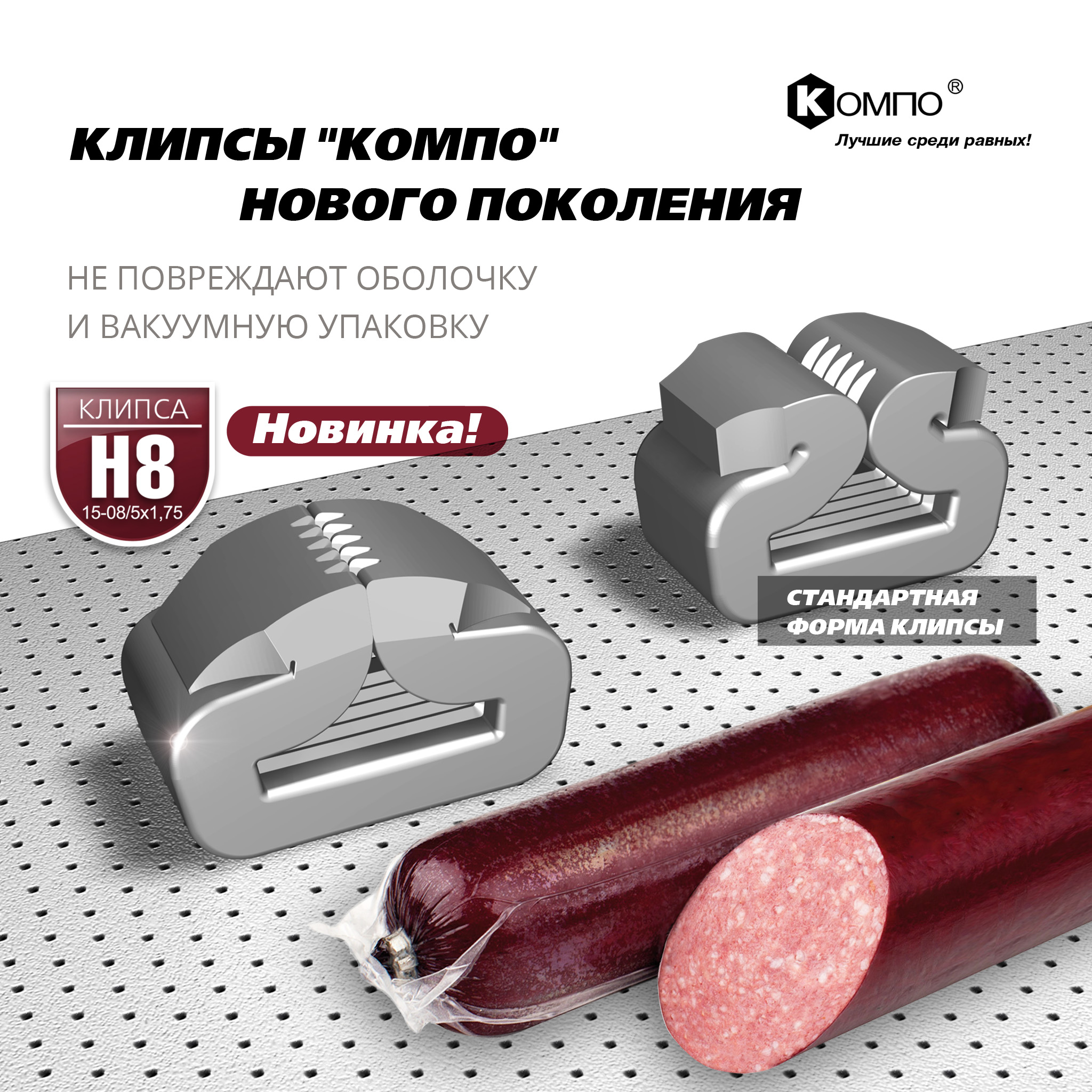 Непрерывные клипсы КОМПО нового поколения разработаны с учётом требований по запечатыванию колбасных батонов в вакуумные оболочки. Клипсы традиционной формы требуют удаления с концов батона перед процедурой вакуумирования. В противном случае существенно возрастает риск повреждения упаковочной плёнки острыми кромками клипсы и потере вакуума.