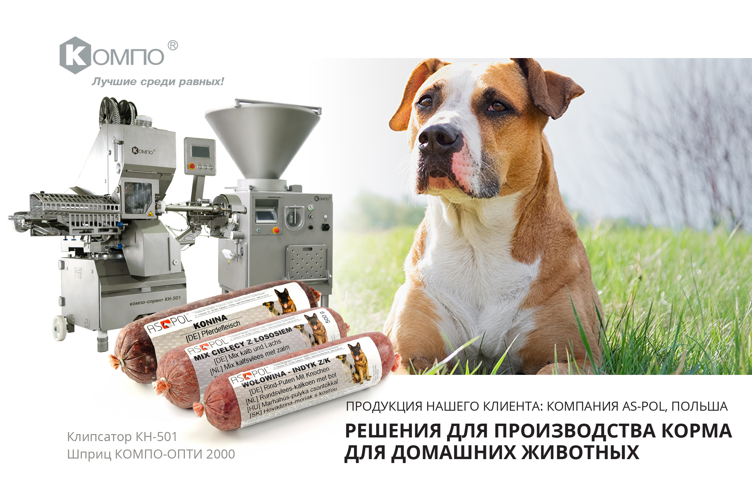 Наши клиенты AS-POL производят корм для собак и успешно работают на линейке оборудования: шприц КОМПО-ОПТИ 2000 + клипсатор КН-501.