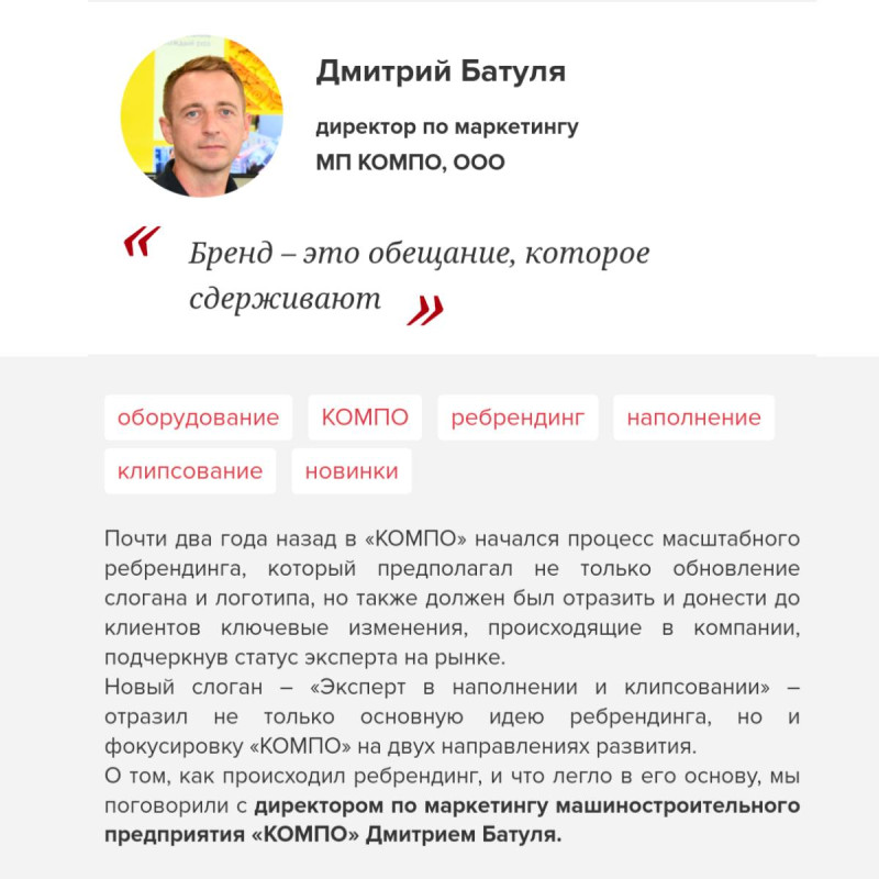 Не пропустили ли вы интервью с топ-менеджерами КОМПО: с генеральным директором КОМПО- Валентином Пикулем, директором по маркетингу - Дмитрием Батулей и продукт-менеджером Александром Ясковичем?