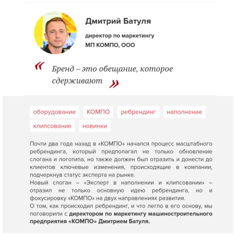 В интервью осветили ребрендинг КОМПО, рассказали о новинках оборудования, поделились планами на ближайшее будущее.