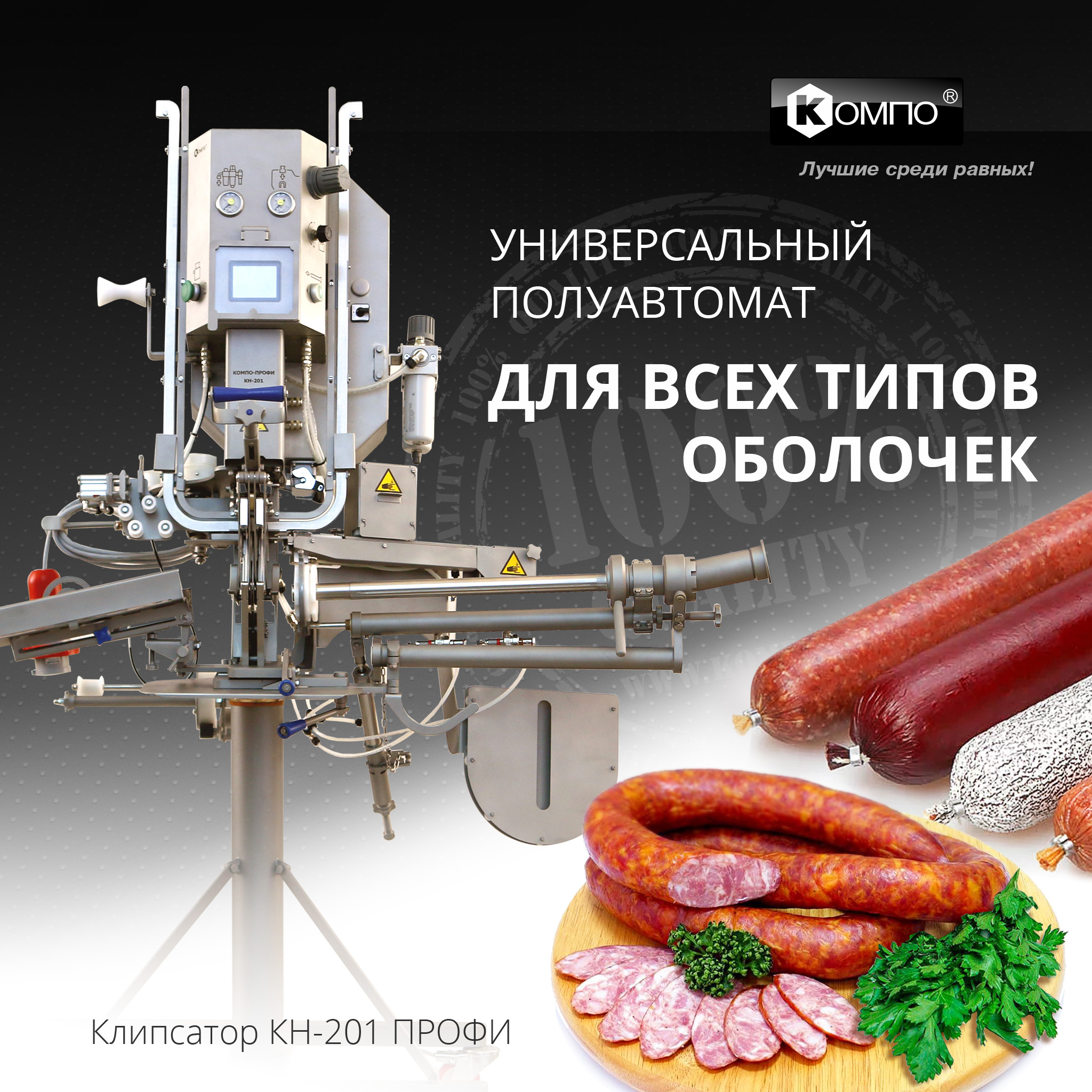 Полуавтоматический двухскрепочный клипсатор КОМПО-ПРОФИ КН-201 с электронным управлением разработан специально для работы с белковыми оболочками. Как и предыдущие поколения наших клипсаторов, КОМПО-ПРОФИ КН-201 замечательно справляется с полиамидными и целлюлозными оболочками диаметром до 90 мм.