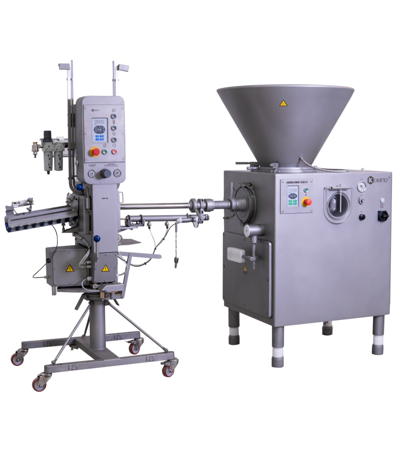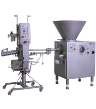 Формовка продукции осуществляется в автоматическом режиме. Обслуживает линейку оборудования один оператор, который контролирует загрузку бункера шприца, настраивает и контролирует соответствие веса батонов, заправляет оболочку на цевку, контролирует наличие скрепки и петли в клипсаторе. Для укладки готовой продукции в тару или навески на рамы привлекается дополнительный работник.
