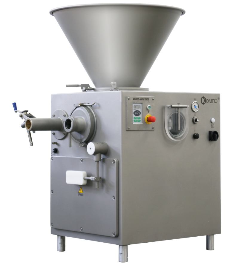Вакуумный шприц КОМПО МИНИ 1500-01 оборудован системой подогрева бункера и корпуса вытеснителя, что позволяет поддерживать дозируемые массы в текучем состоянии. Применение винтов специальной конфигурации обеспечивает высокую производительность шприца-наполнителя и, в сочетании с вакуумной системой, отсутствие пор и пустот в готовой продукции. Шприц имеет упрощенный кнопочный пульт управления, малые габаритные размеры, что позволило существенно снизить его стоимость .