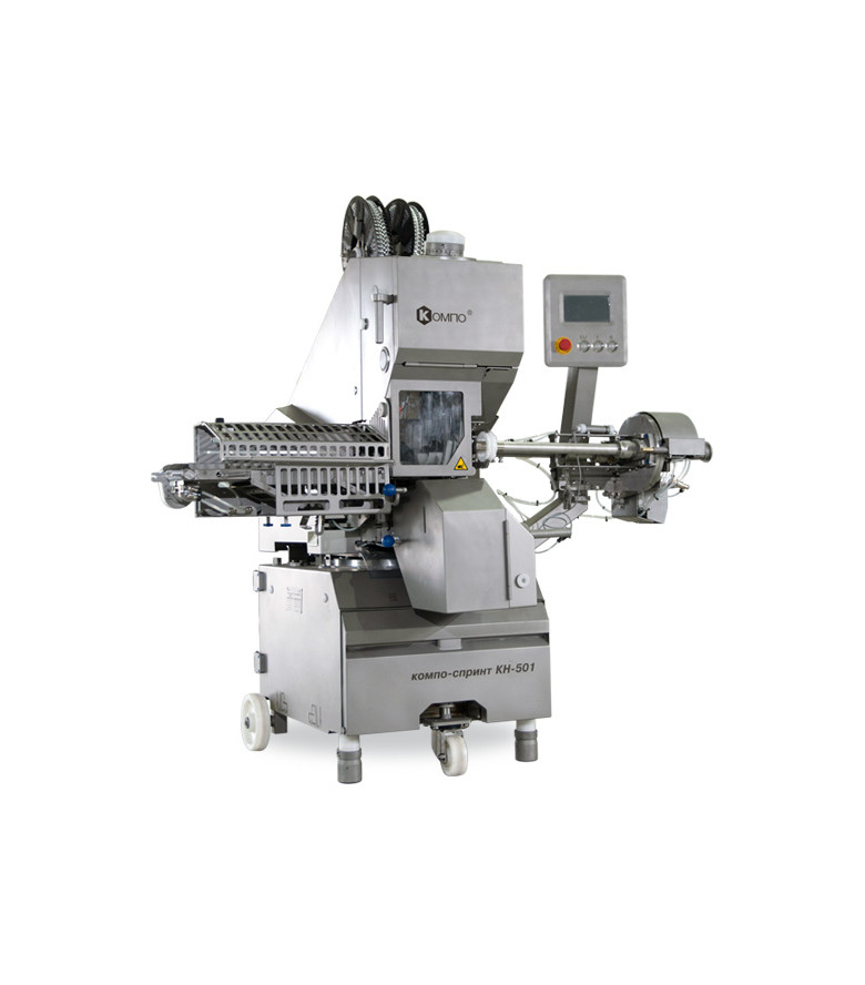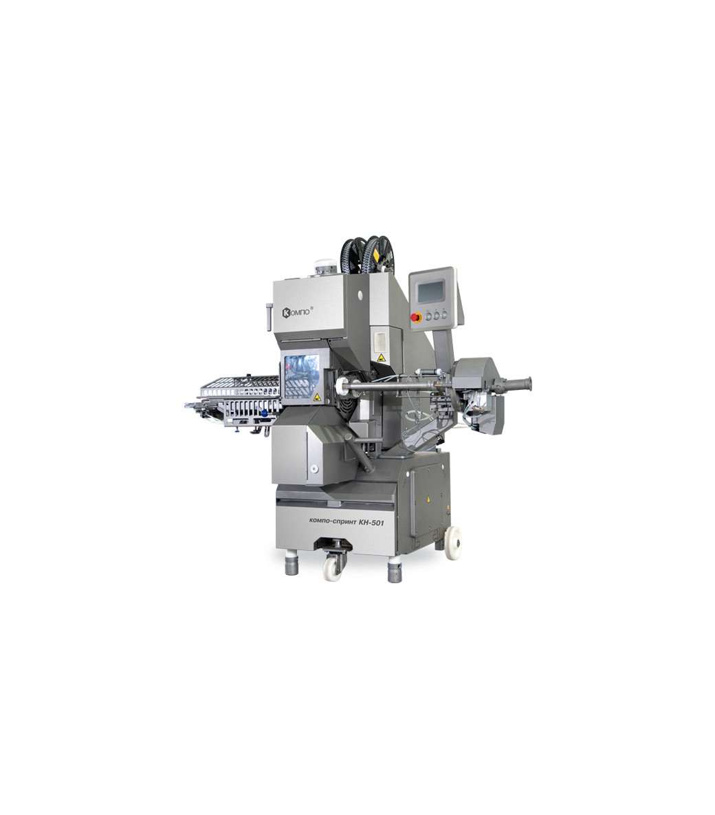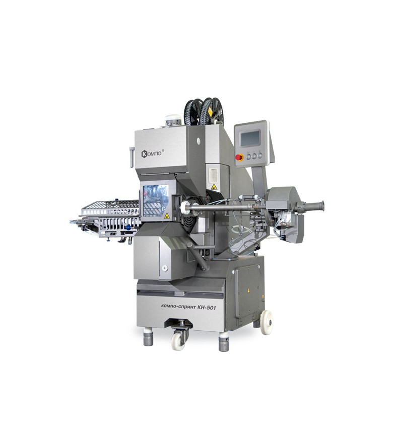 Автоматический клипсатор КОМПО СПРИНТ КН-501 предназначен для изготовления колбасных батонов в автоматическом режиме с использованием белковых, полиамидных, целлюлозных, фиброузных оболочек. Клипсатор позволяет выпускать колбасные изделия в диапазоне диаметров от 30 до 120 мм в виде одиночных батонов, цепочек батонов, а также кольцевых колбас с петлей или нитью.