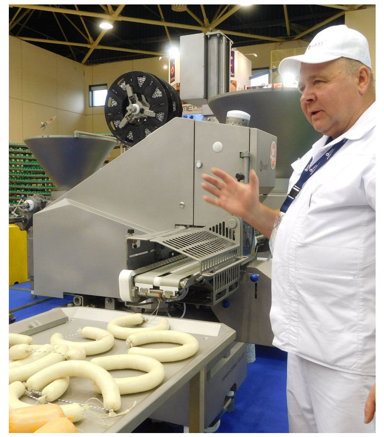 Конец оболочки продевается в узел пережима, нажатием кнопки на панели управления осуществляется наложение первой клипсы и петли на рукав оболочки. Оператор подстраивает степень зажатия клипсы, регулирует степень переполнения оболочки и клипсатор готов к автоматической работе, для чего необходимо только нажать кнопку запуска работы в автоматическом режиме.