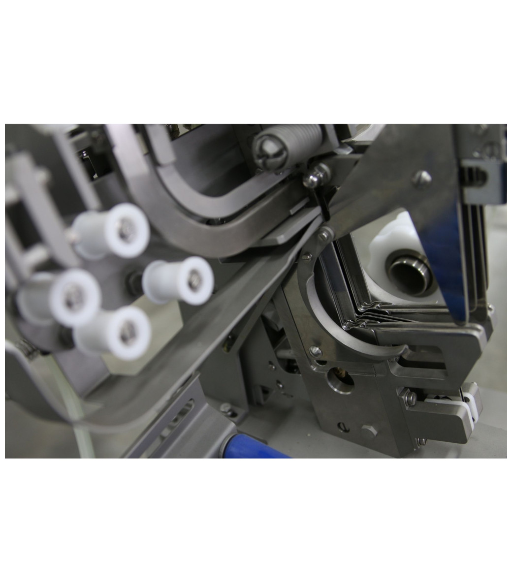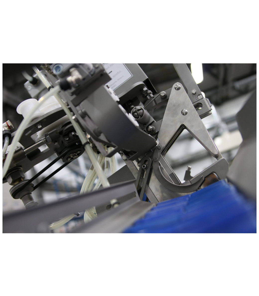 Роликовый лоток служит для приёма сформированного и отрезанного колбасного батона для дальнейшего перемещения на технологический стол. Угол наклона лотка можно легко изменить. На заднем борту лотка смонтирован флажок для дозирования длины батона. Формируемый батон, достигнув требуемой длины, отклоняет флажок регулятора. Для производства кольцевых и рожковых колбас роликовый лоток заменяется широким лотком. Любой лоток является быстросъёмным, что обеспечивает удобство санитарной обработки.