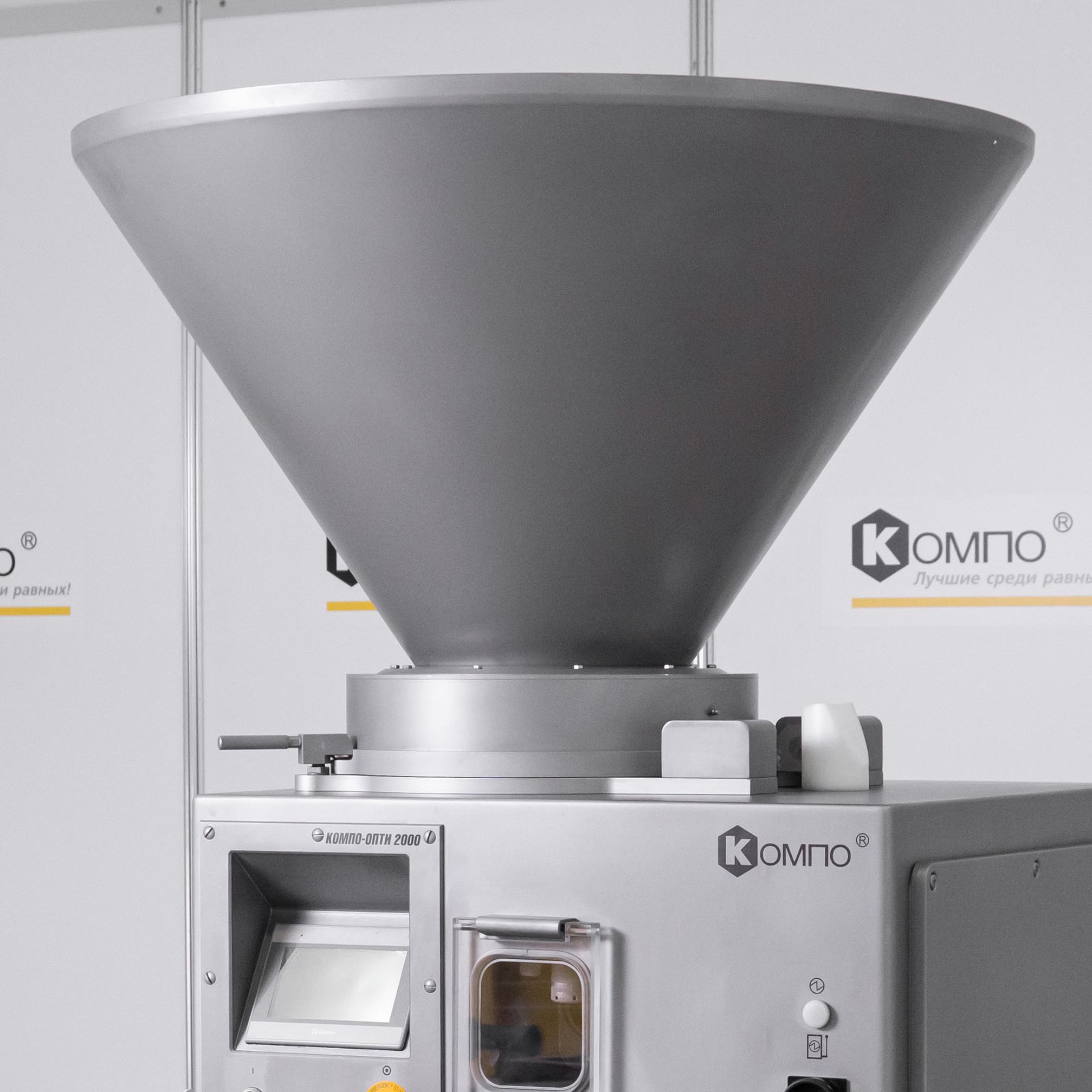 В модернизированном КОМПО-ОПТИ 2000М изменено крепление реактивной спирали для удобстства доступа и обслуживания. Удобство зачистки бункера при переходе на другой вид продукции, а также при его санитарной обработке, обеспечивает складная ступенька, благодаря которой оператор небольшого роста получает полноценный доступ в бункер.