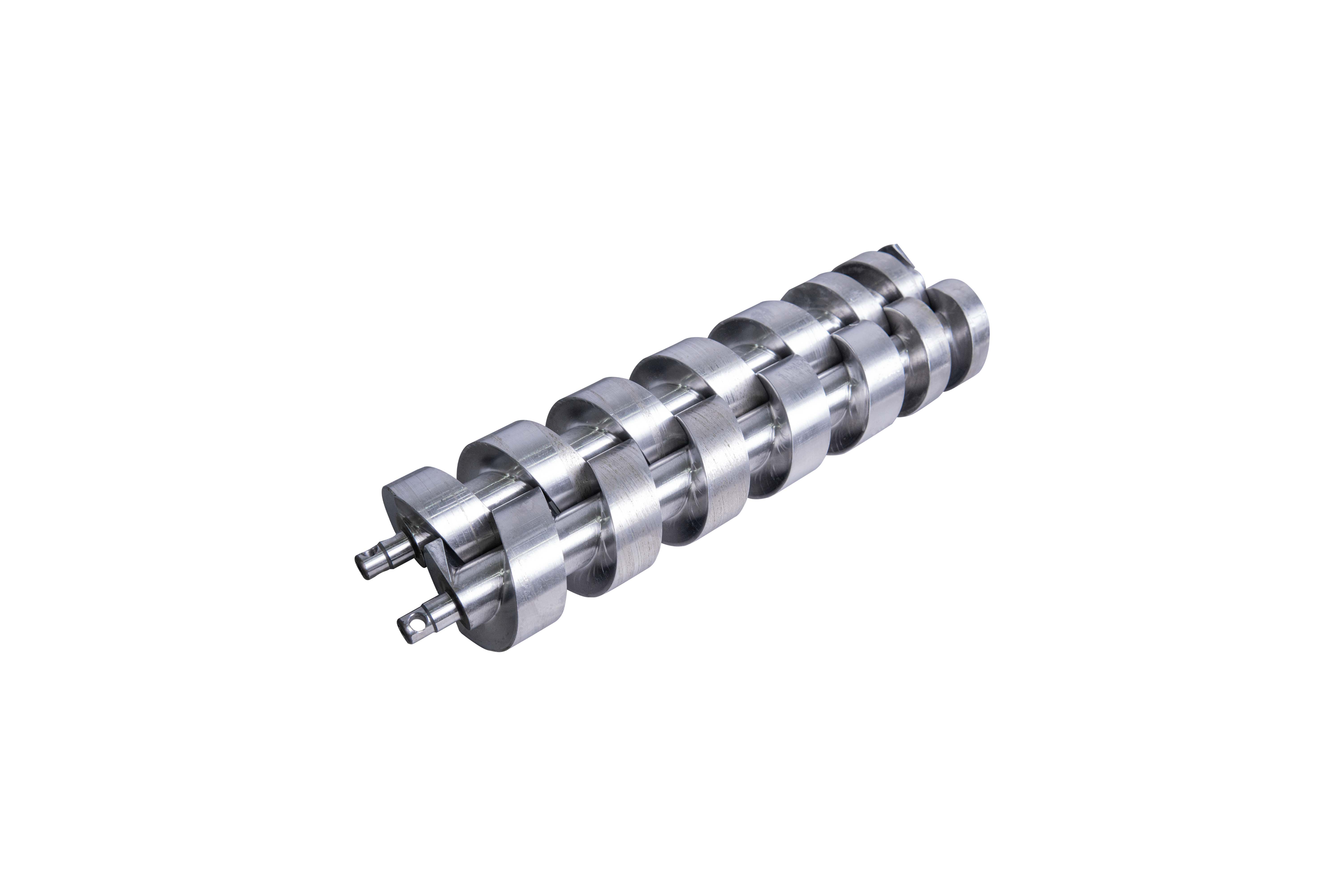 Каждый из вариантов винтов имеет свое назначение по применению в производстве определенных видов продукции: сарделек, сосисок, варённых или структурных колбас. Использование винтов новой конструкции позволяет существенно повысить точность дозирования, производительность и качество работы на структурных фаршах. Комплект винтов вытеснителя подбирается индивидуально в зависимости от требований клиента на основании технического задания. Техническим заданием определяется перечень продуктов, которые планируется выпускать на вакуумном шприце, их основные характеристики и требования к точности дозирования, производительности. Для увеличения срока службы винтов и корпуса вытеснителя в шприце применена опорная решётка, которая предотвращает контакт корпуса вытеснителя и винтов в процессе работы шприца.