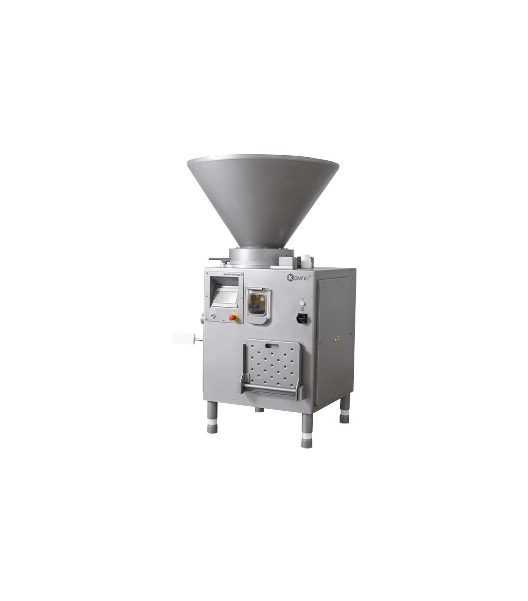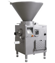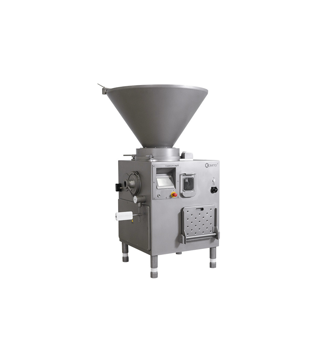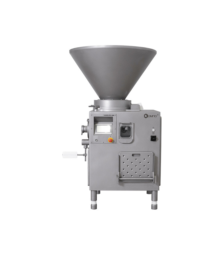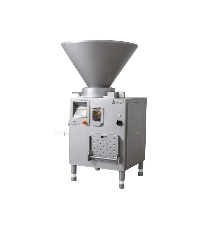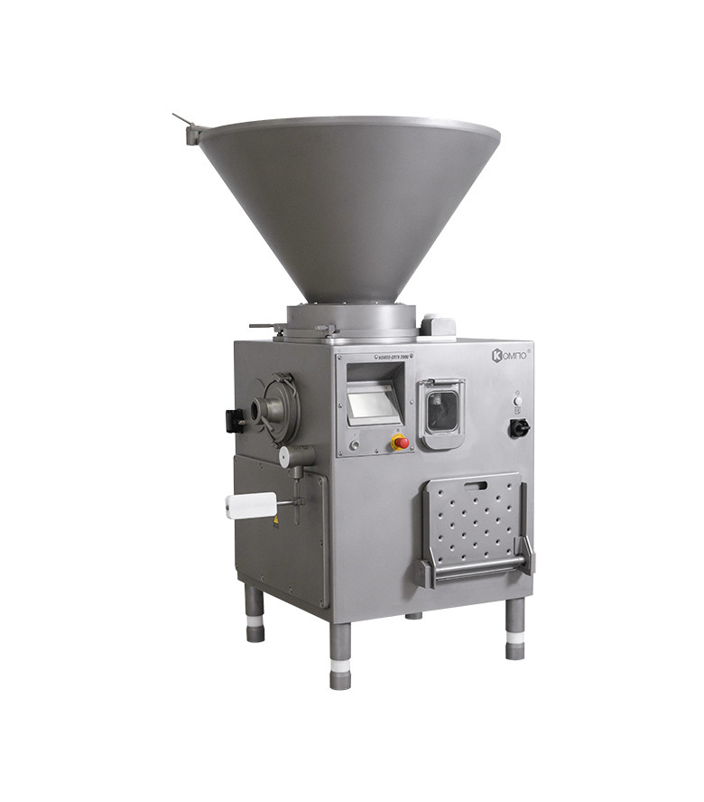 Вакуумный колбасный шприц винтового типа КОМПО ОПТИ 2000 предназначен для наполнения и дозирования фаршей варёных и структурных колбас, сосисок, сарделек, ливерных и кровяных колбас, а также паштетов. Запатентованная конструкция узлов нагнетающего насоса позволяет получить готовый продукт, отличающийся монолитностью, плотной консистенцией, без пор и пустот.